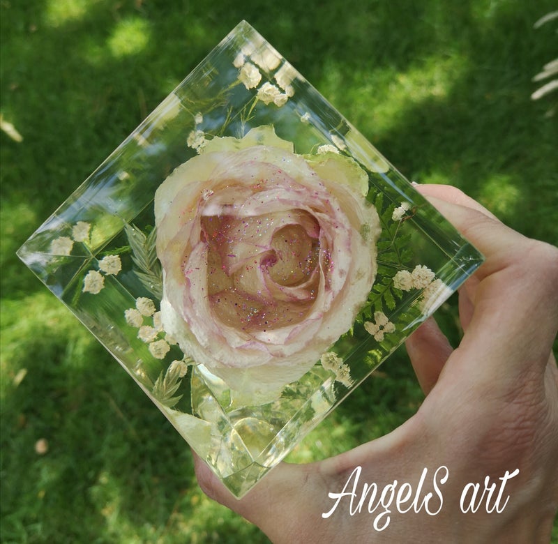 Een mooie tastbare herinnering van je dierbare overledene laten maken, door dierbare bloemen of bloemen van het rouwstuk, in de epoxy te laten gieten.